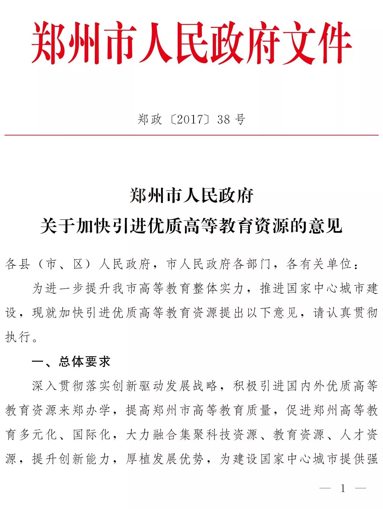 投实消息:11月22日,郑州市人民政府发布《关于加快引进优质高等教育资源的意见》(以下简称《意见》,全文附后)。
