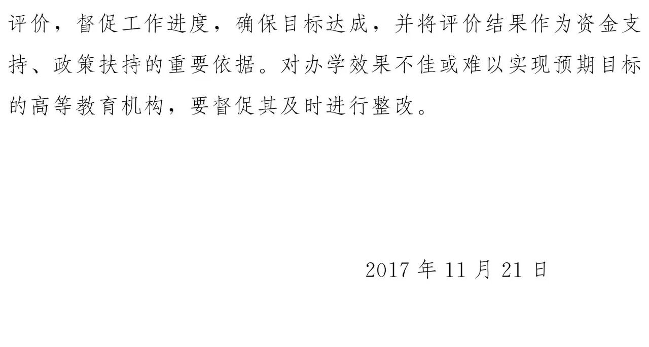 资金支持:设立100亿元高等教育发展专项资金,用于支持引进优质高等教育机构;对引进的非独立法人国内外优质高等教育机构,第一年给予不低于500万元启动补助资金;对引进的具有独立法人资格的国内外优质高等教育机构,第一年给予不低于1000万元启动补助资金。以后年度按公办院校标准给予生均公用经费补助。