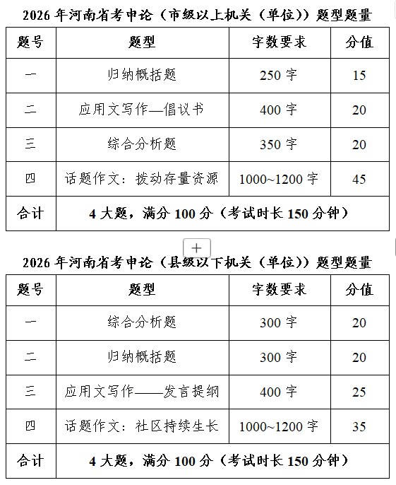 与2025年相比,2026年河南省考呈现出“延续中深化,平稳中求新”的鲜明特征。行测科目在题量分布与整体框架保持稳定的同时,进一步强化政治素养考查,将党的创新理论深度融入各模块命题。申论则根据岗位层级细化能力区分:市级试卷延续大作文考查,题量架构不变,作答字数要求略有提升,侧重宏观思辨与政策理解;县乡卷恢复话题作文,既延续基层实务导向,又强化对综合素养的全面衡量,更加凸显“人岗相适”的科学选人导向。